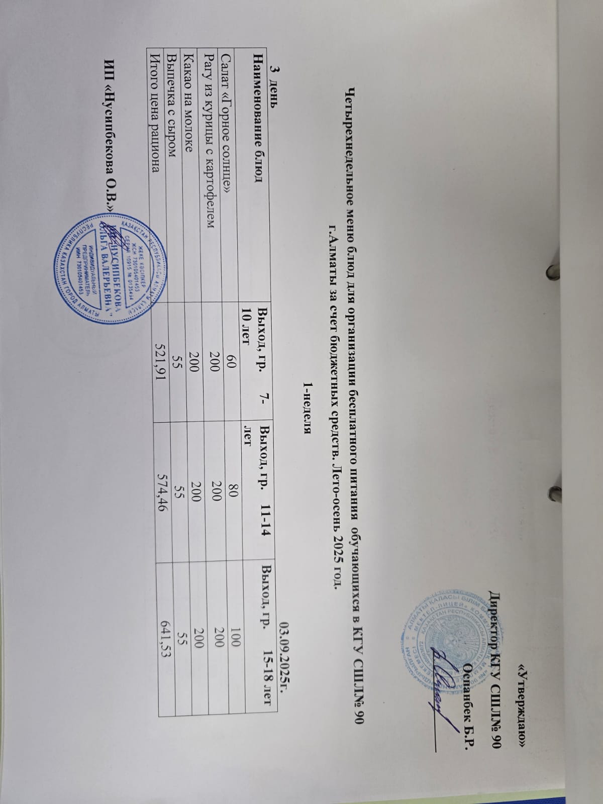» Ас мәзірі 03.09.2025 / Меню 03.09.2025