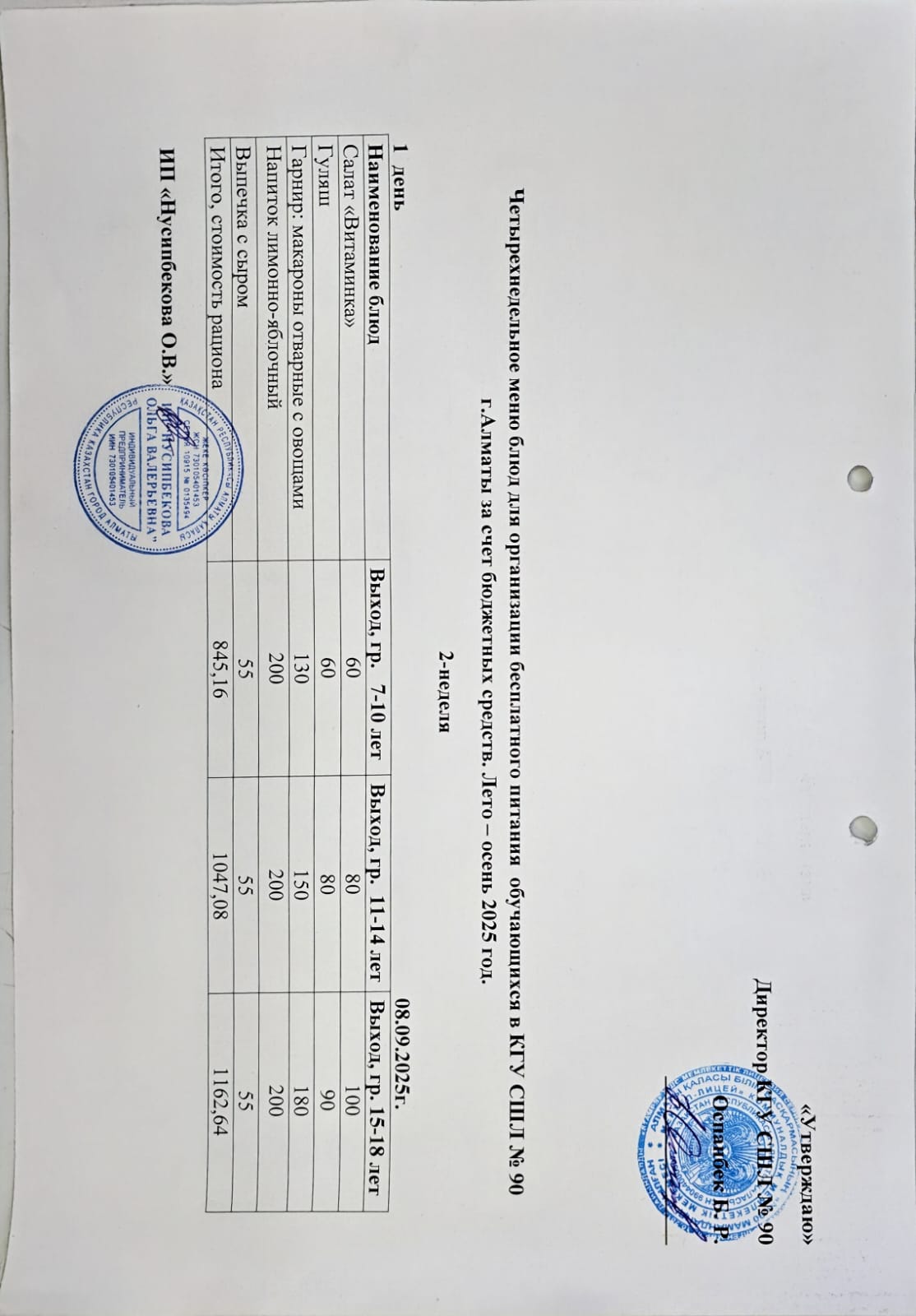 » Ас мәзірі 08.09.2025 / Меню 08.09.2025