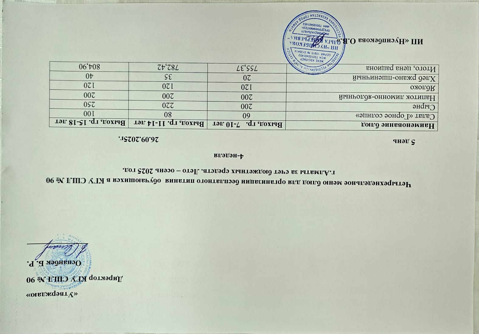 Ас мәзірі 26.09.2025 \ Меню 26.09.2025