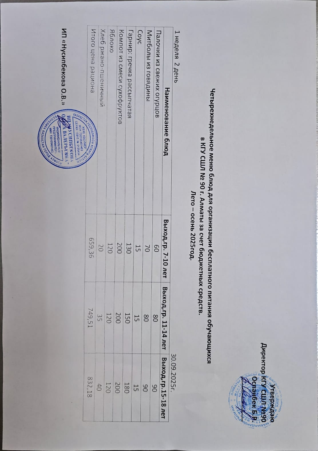 Ас мәзірі 30.09.2025 \ Меню 30.09.2025