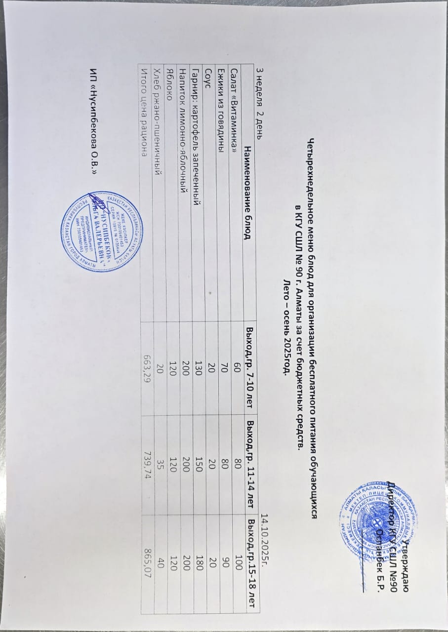 » Ас мәзірі 14.10.2025/Меню 14.10.2025