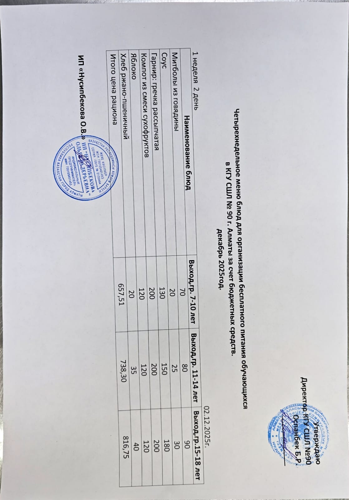 Ас мәзірі 02.12.2025 \ Меню 02.12.2025