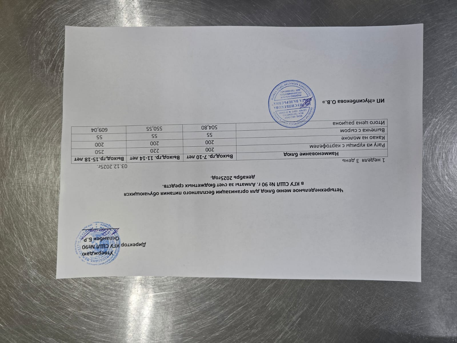 Ас мәзірі 03.12.2025 \ Меню 03.12.2025