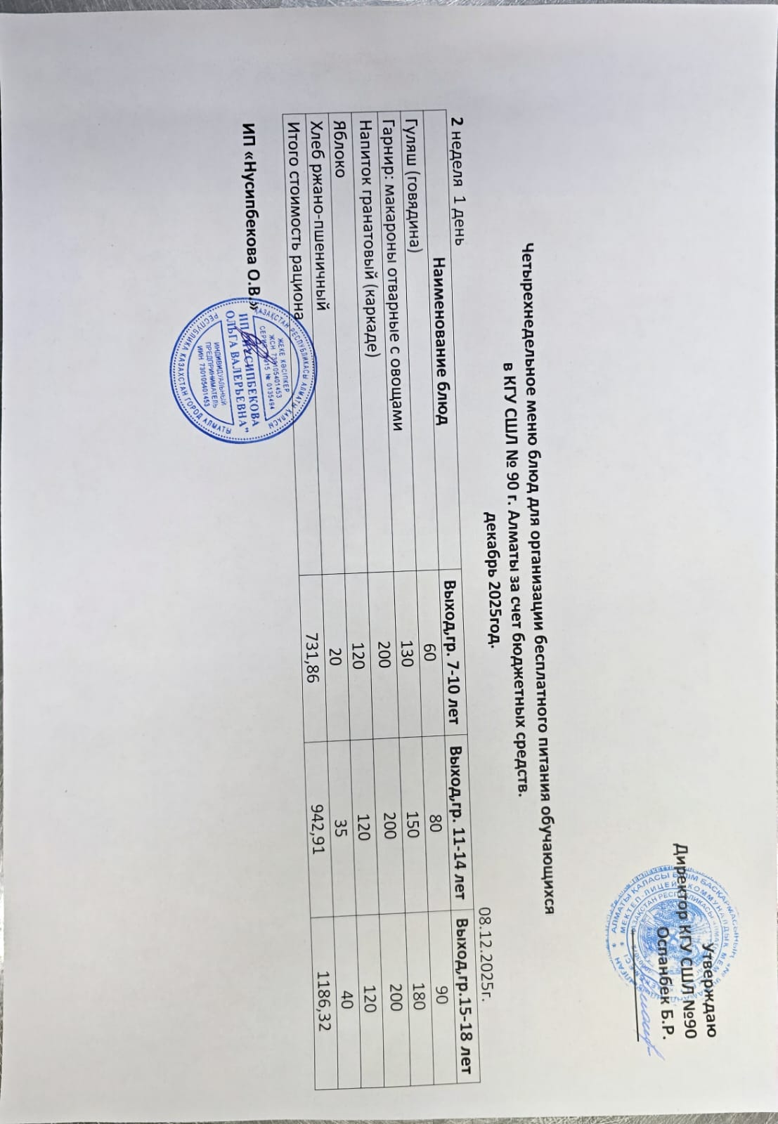 Ас мәзірі 08.12.2025 \ Меню 08.12.2025