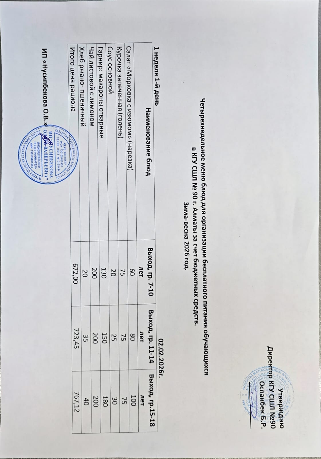 Ас мәзірі 02.02.2026 \ Меню 02.02.2026